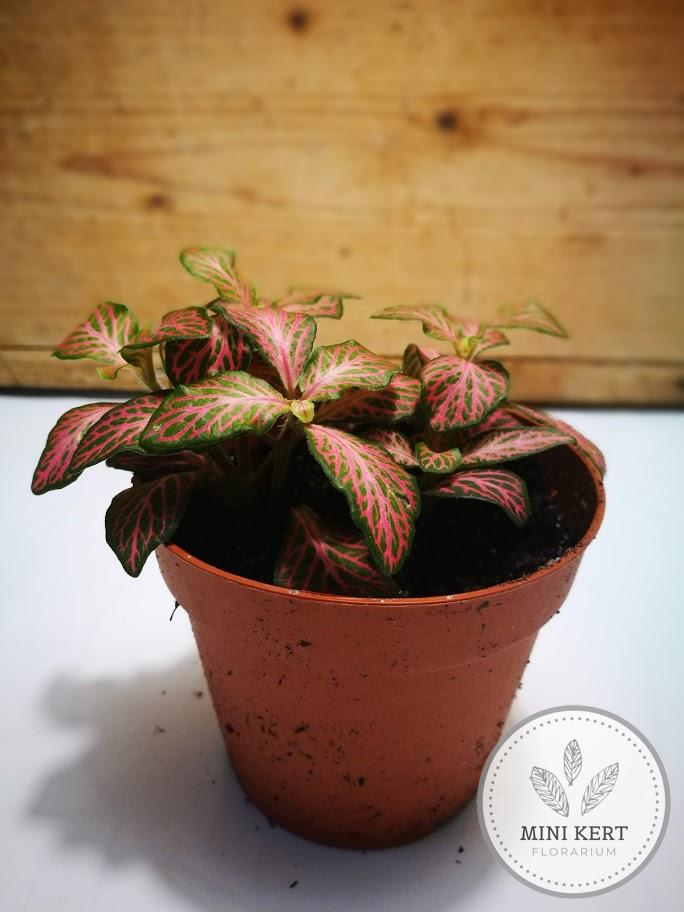 Elképesztően mutatós növényke a florariumban! Több fajtája is ismert, attól függően, hogy a hálószerűen mutatkozó rajzolat a sötétzöld alapon milyen színű. Lehet világoszöld, sötét rózsaszín is. Angol neve: nerve plant, vagyis ideg növény, amit a levélerek mintájáról kapott. Hívják még mozaik növénynek is.