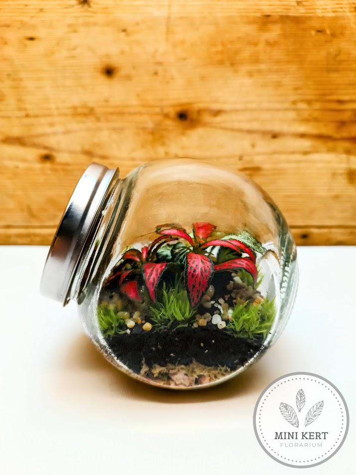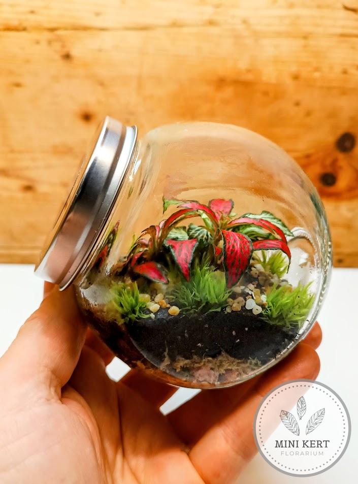 A döntött tartályos floráriumok sorozatának középső méretű tagja. A florárium aljába dekorkavics réteg került, amelyet szénréteg és föld követ. A florárium ideális a párakedvelők számára, így mini növésűeket telepítünk bele. A felszínt a párát szintén nagyon kedvelő mohák borítják.