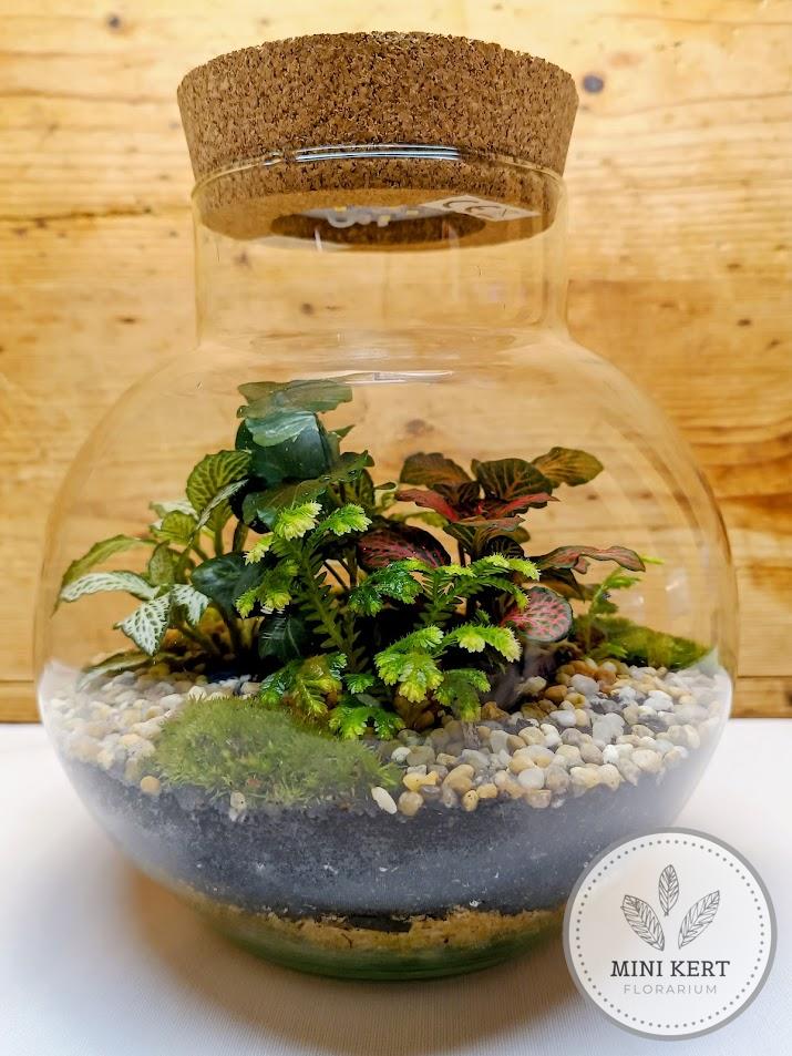 A floráriumokat az éppen szezonálisan rendelkezésre álló növényekből készítjük, a sziklák és egyéb dekorációs elemek is eltérhetnek a képen látható mintadarabétól.