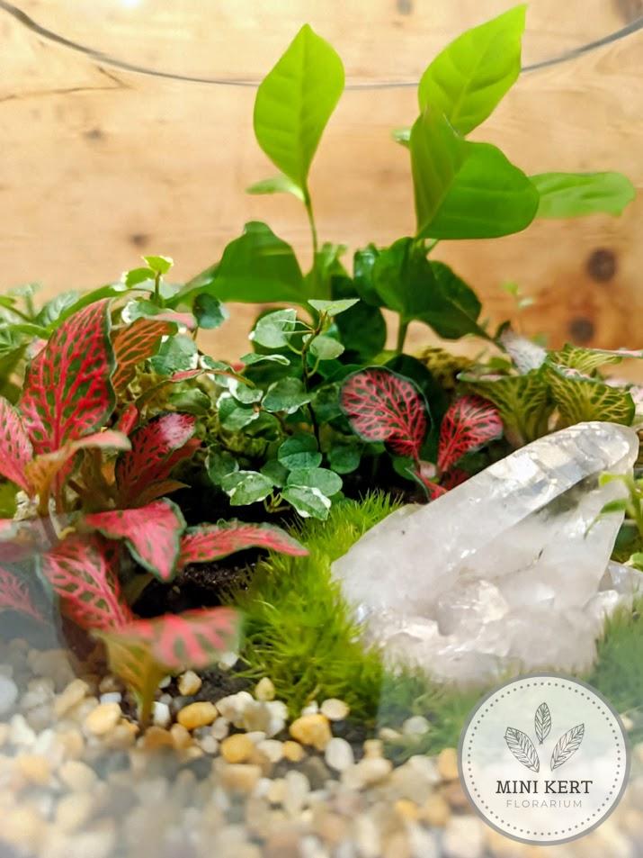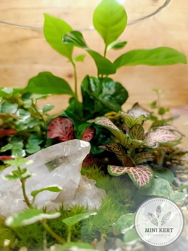 Egy csodás hegyikristály teszi különlegessé ezt a floráriumot.